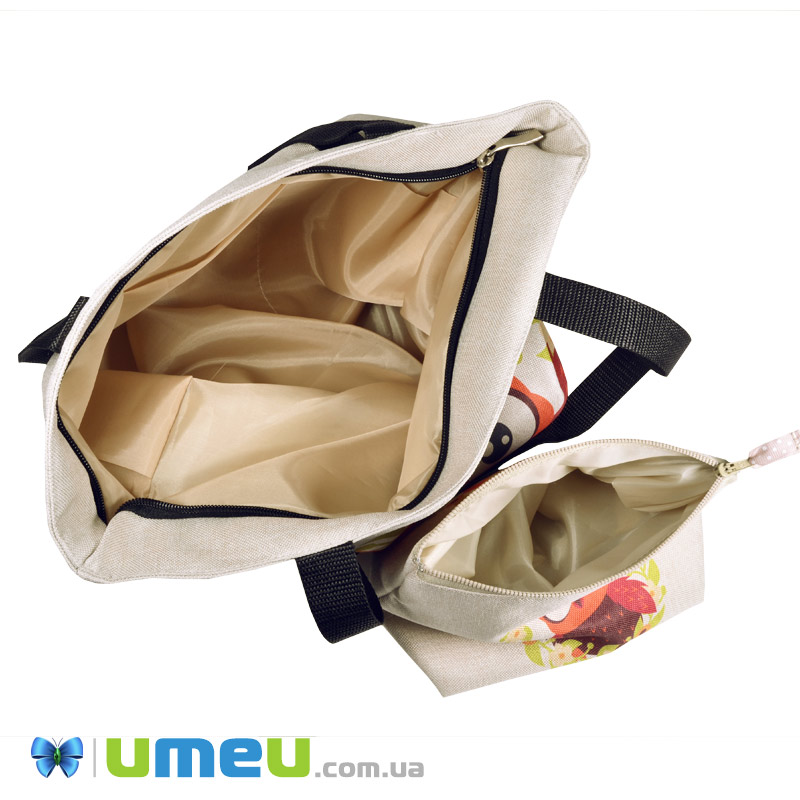 Сумка та косметичка з нанесеним малюнком під вишивку бісером чи нитками. Є рекомендація щодо підбору чеського бісеру за номерами, кольорами та кількістю. БІСЕРОМ НЕ КОМПЛЕКТУЄТЬСЯ.