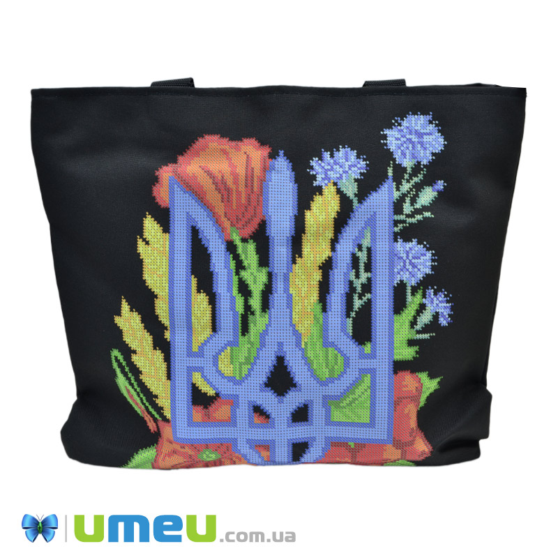 Сумка з принтом під вишивку, Тризуб з квітами, Чорна (SXM-044492)