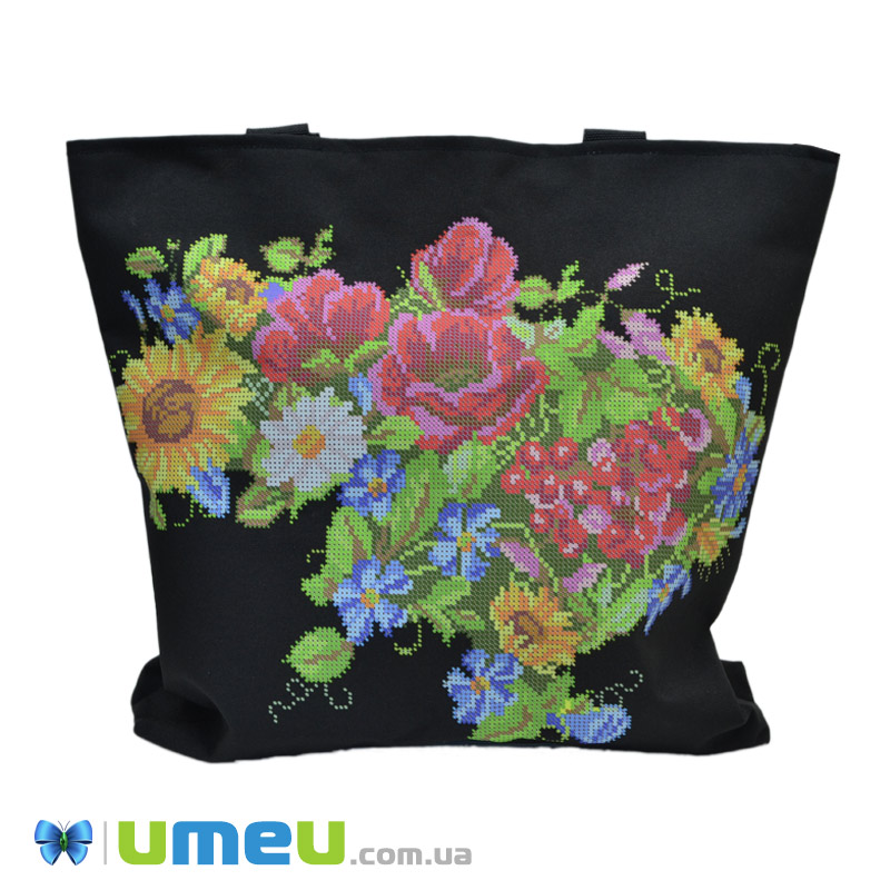 Сумка з принтом під вишивку, Квіти, Чорна (SXM-044489)