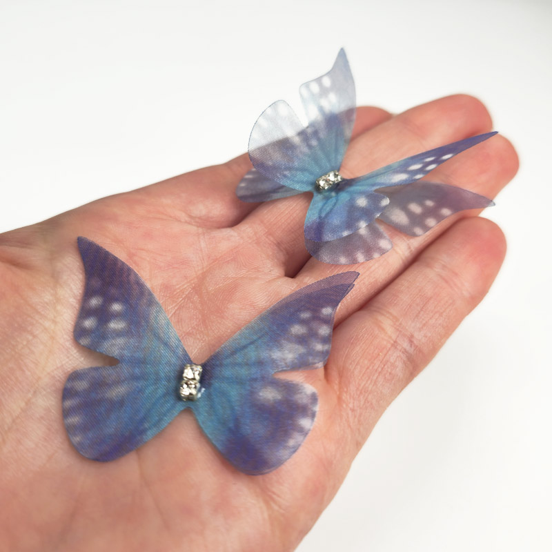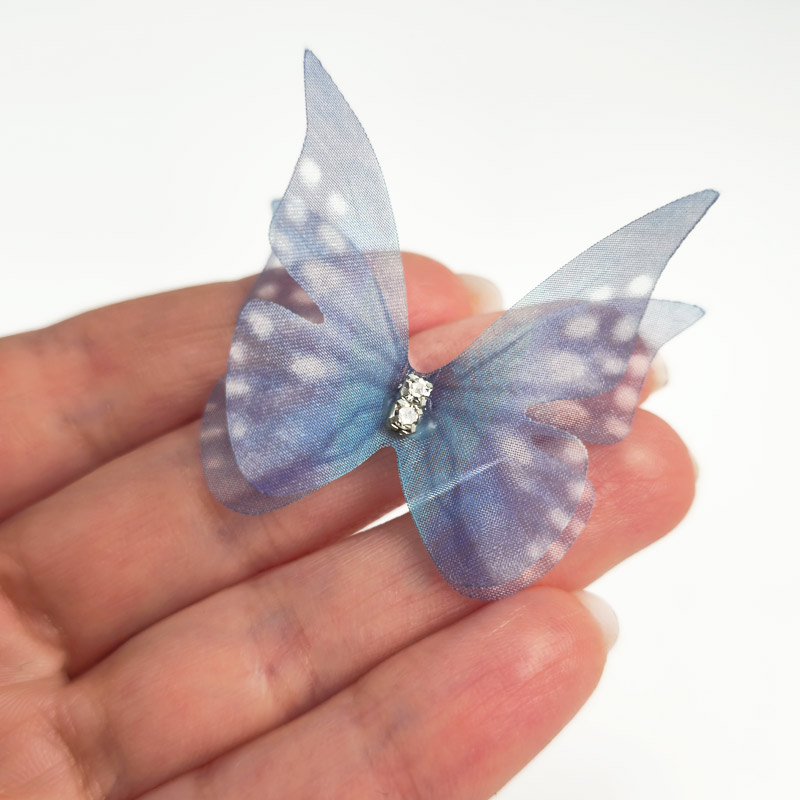 Аплікація пришивна Метелик з органзи, 5х3,5 см, Синя (APL-060096)