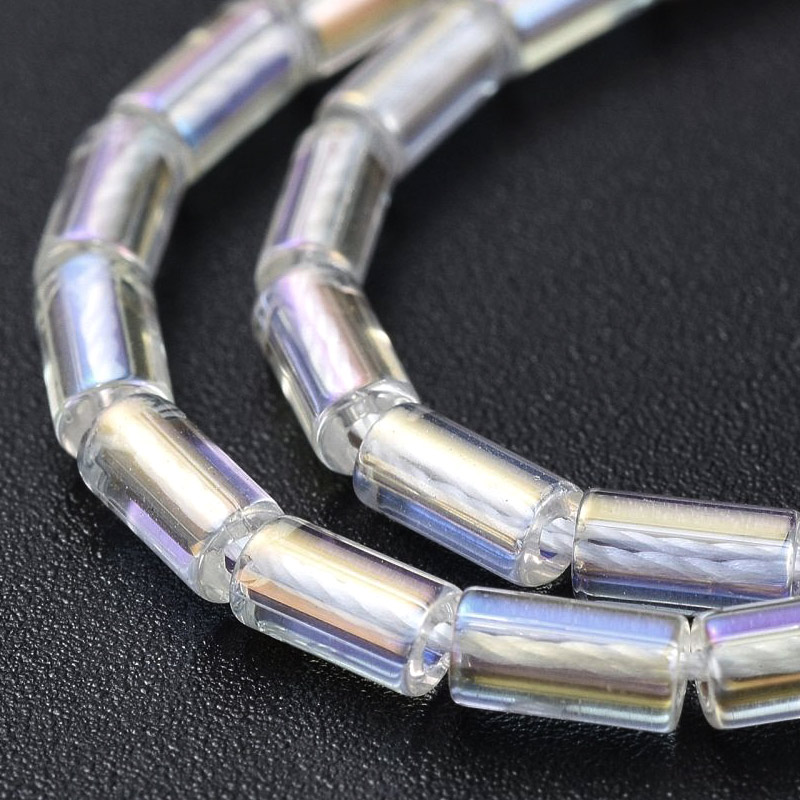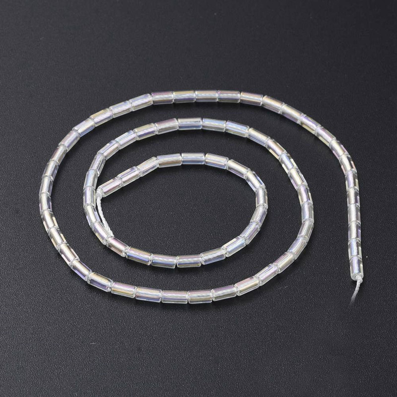 Розмір намистин може змінюватись в межах 0,5 мм.Намистини скляні, Циліндр, 4,5х2,5 мм, Прозорі АВ (BUS-057491) / 1 низкаBUS-05749145.00₴ / низка -