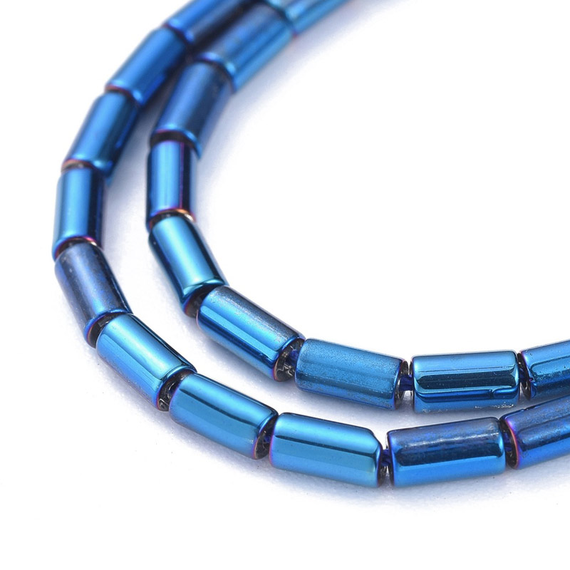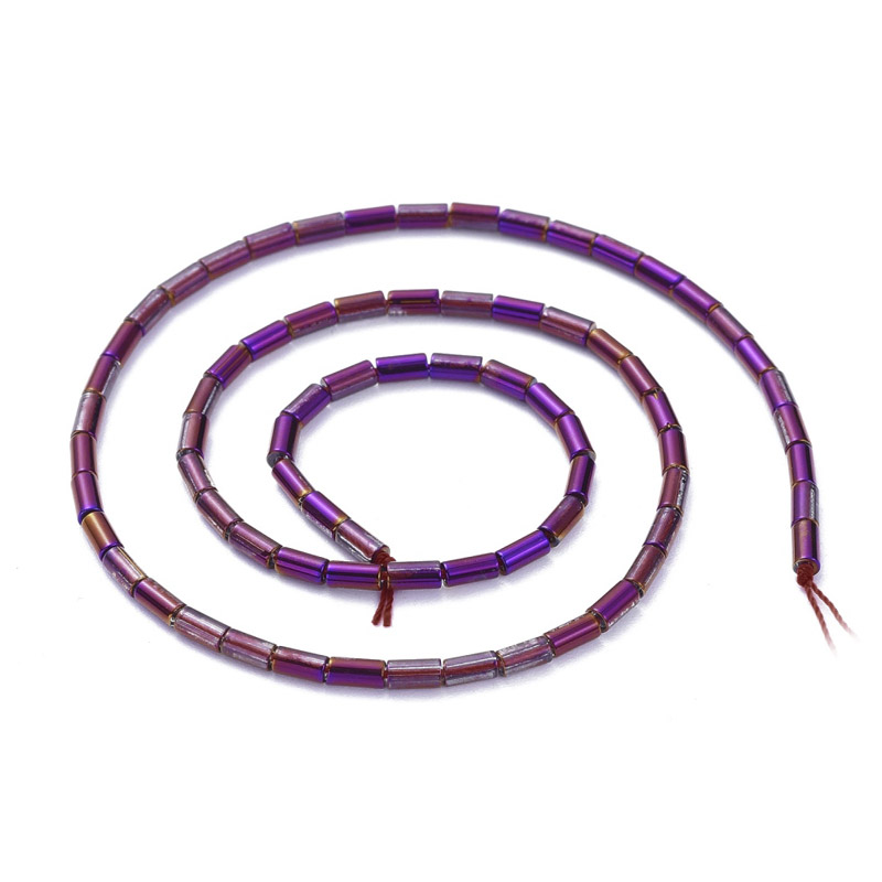 Розмір намистин може змінюватись в межах 0,5 мм.Намистини скляні, Циліндр, 4,5х2,5 мм, Фіолетово-сині (BUS-057497) / 1 низкаBUS-05749745.00₴ / низка -