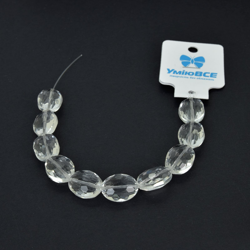 Довжина низки приблизно 16 см (10 шт).Намистини скляні, Овал гранований, 16х13 мм, Прозорі (BUS-057499) / 1 низкаBUS-05749965.00₴ / низка -