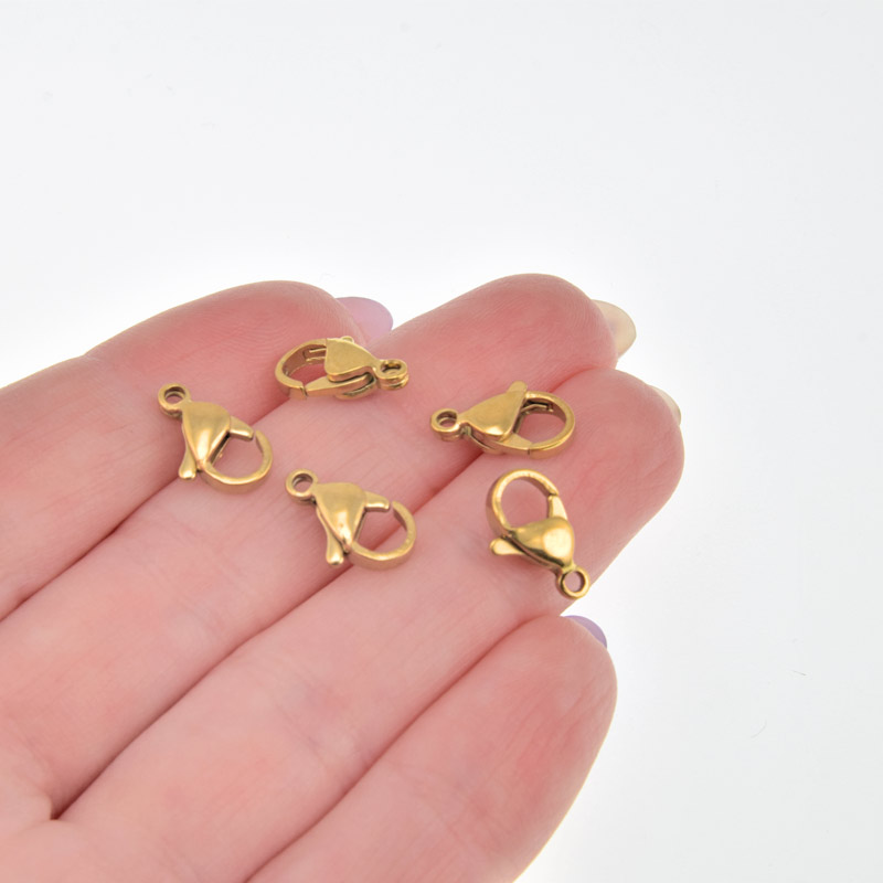 Замки-карабіни з нержавіючої сталі, 12х7 мм, Золото (STL-057074)
