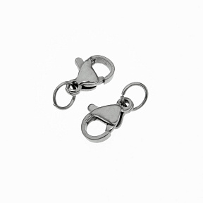 Замки-карабіни з нерж. сталі з колечком 5 мм, 12х7 мм, Темне срібло (STL-057077)