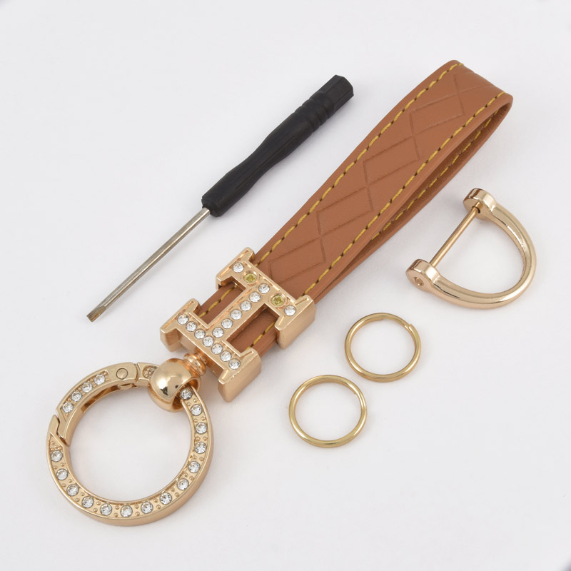 Брелок, 13х3,5 см, Коричневий, Штучна шкіра, Золото (OSN-058508)
