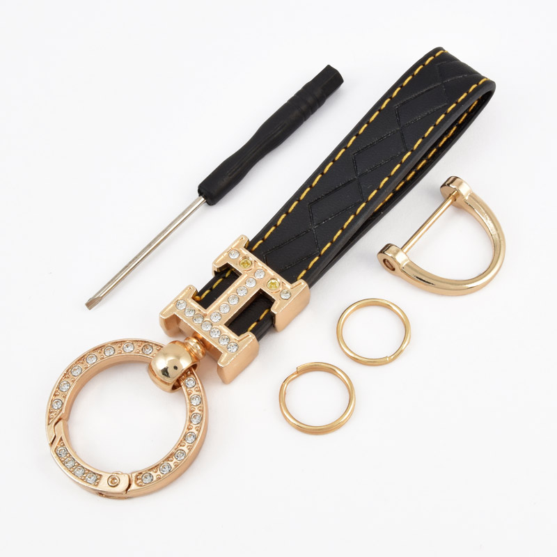Брелок, 13х3,5 см, Чорний, Штучна шкіра, Золото (OSN-058511)
