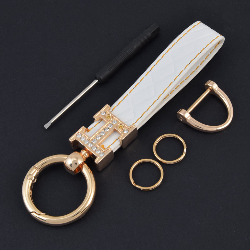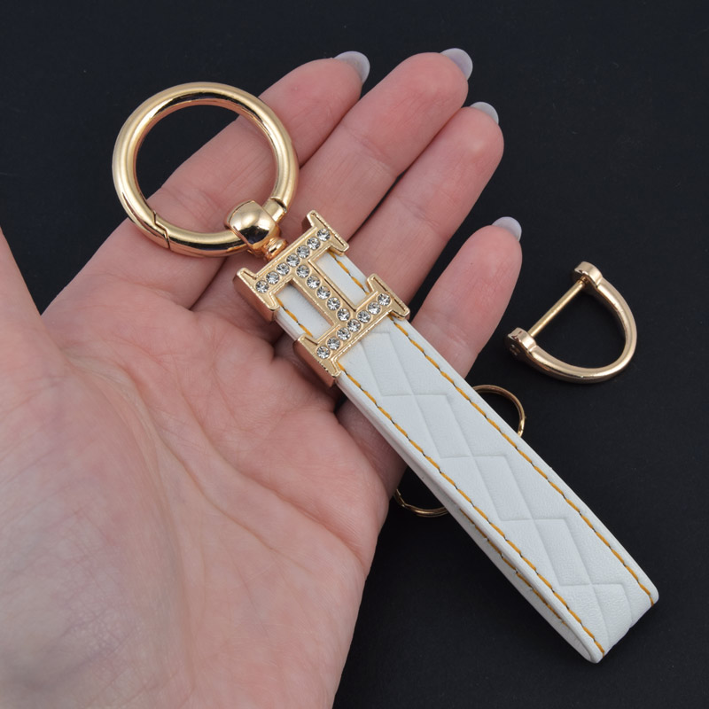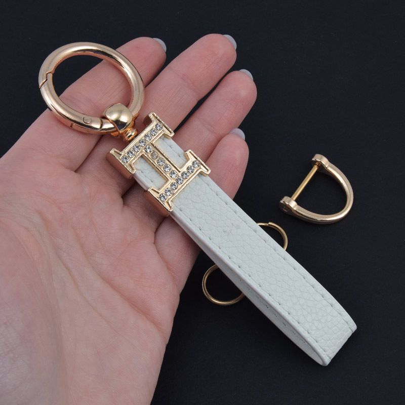 Брелок, 13х3 см, Білий, Натуральна шкіра, Золото (OSN-058503)