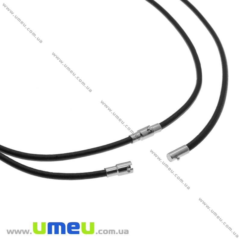 Товщина шкіряного шнура 3 мм, розмір замку-карабіна 12х7 мм. Фурнітура з нержавіючої сталі.Основа для кольє шкіряна з замком з нерж. сталі, Чорна, 47 см, 3 мм (OSN-034669) / 1 штOSN-03466952.00₴ / шт -