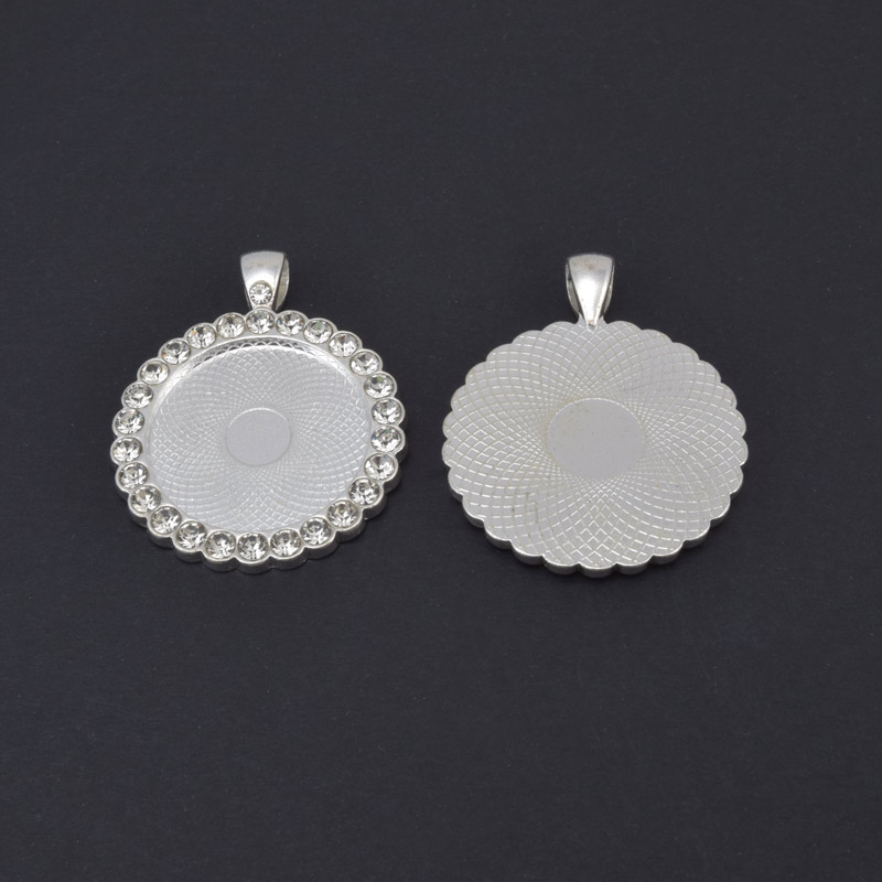 Основа кругла зі стразами, 43х34 мм, 25 мм, Світле срібло, (OSN-059439)