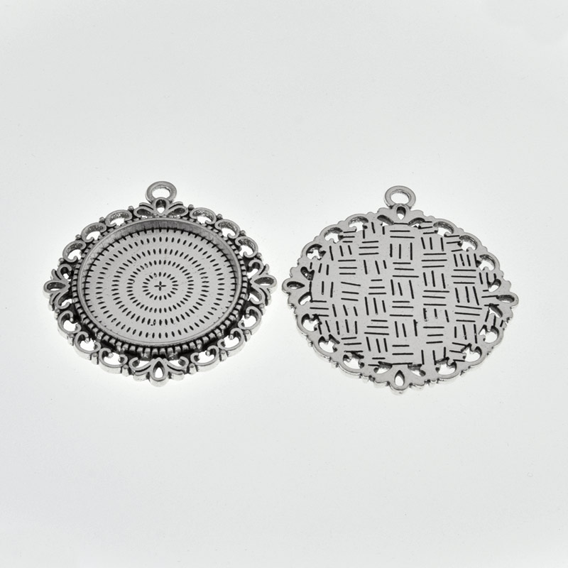 Основа кругла ажурна, 43х38 мм, 25 мм, Античне срібло (OSN-059468)