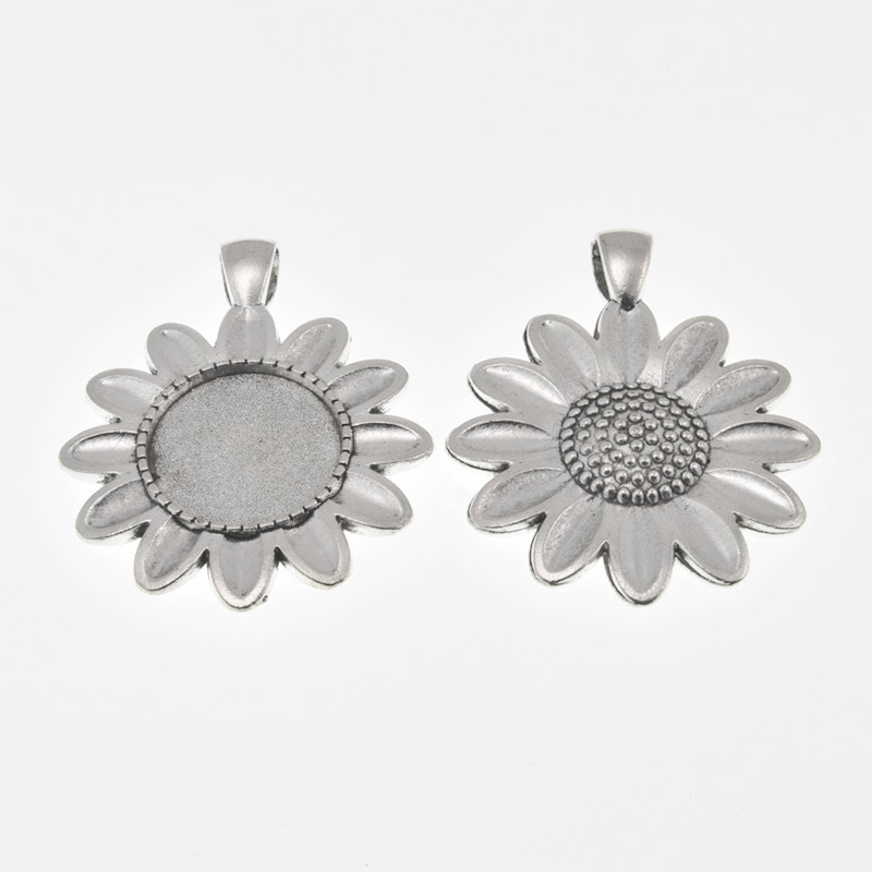 Основа кругла двостор. Квітка, 43х34 мм, 18 мм, Античне срібло (OSN-059464)