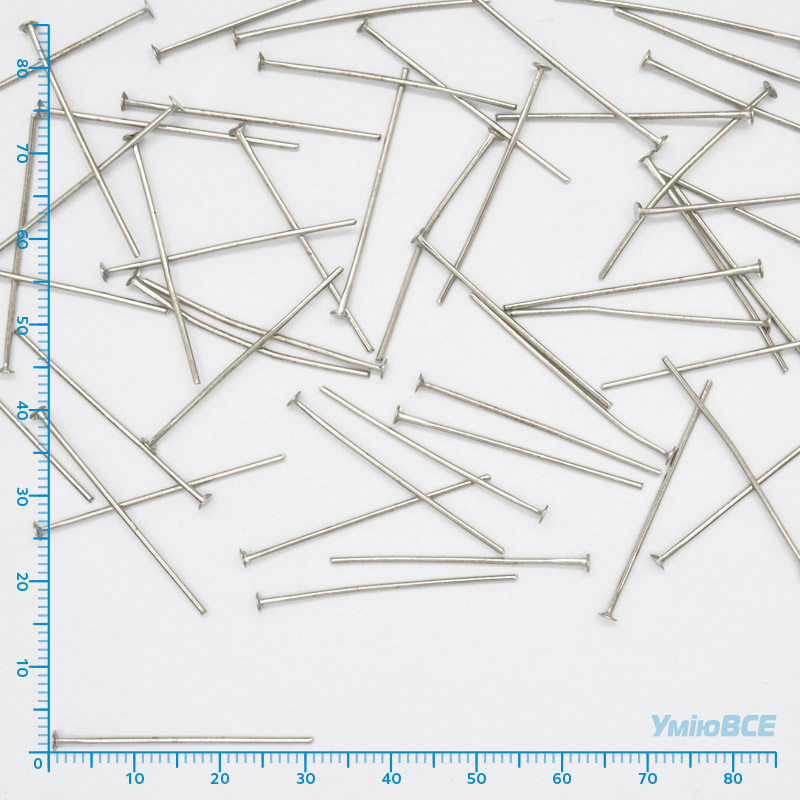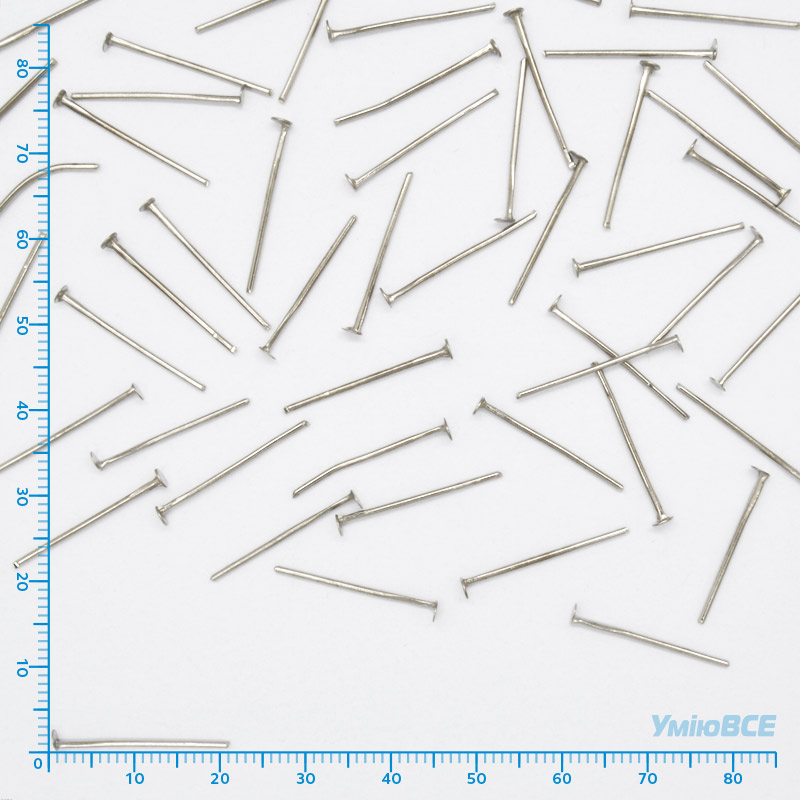 В упаковці 100 г приблизно 550 шт.Гвоздики, Темне срібло, 4,5 см, 0,7 мм (PIN-018177) / 1 уп (50 шт)PIN-0181777.50₴ / уп (50 шт) -