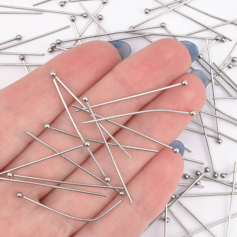 Гвоздики з кулькою з нерж. сталі, 50 мм, Темне срібло (STL-056229)