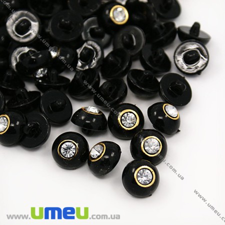 Гудзик пластиковий на ніжці Круглий зі стразами, 13 мм, Чорний (PUG-012890) / 1 штPUG-0128902.50₴ / шт -