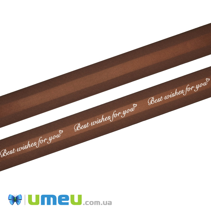 У мотку приблизно 18 мРепсова стрічка Best wishes for you, 25 мм, Коричнева (LEN-048586) / 1 мLEN-048586 Кратно 0.5 едДаний товар можна купити