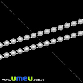 В одному метрі 190 полубусін.Полубусіни на ниті, Перли, 4 мм, Білі (KAB-019735) / 1 мKAB-019735 Кратно 0.1 едДаний товар можна купити