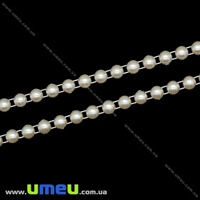 В одному метрі 190 полубусін.Полубусіни на ниті, Перли, 4 мм, Кремові (KAB-019736) / 1 мKAB-019736 Кратно 0.1 едДаний товар можна купити