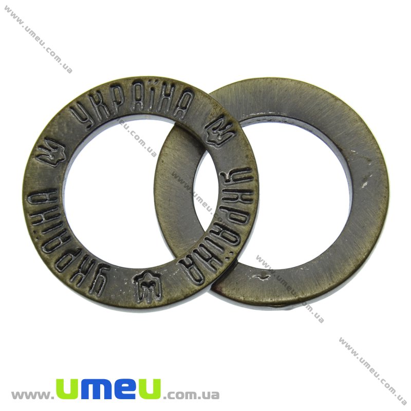 [Архів] Конектор металевий Кільце Україна, 23 мм, Антична бронза (KON-010205) / 1 шт