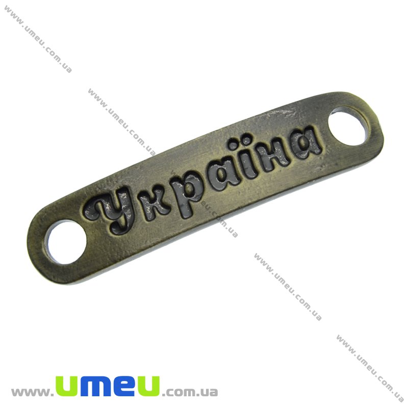 [Архів] Конектор-пластина металевий Україна, 38х8 мм, Антична бронза (KON-010219) / 1 шт