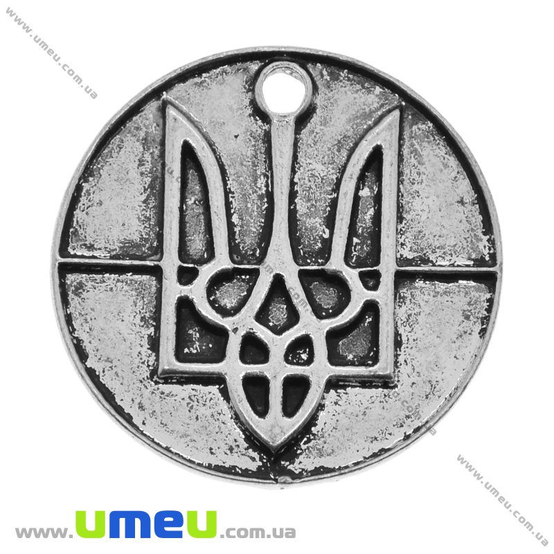 [Архів] Підвіска металева кругла Тризуб, Античне срібло, 22 мм, УЦІНКА (POD-010223) / 1 шт