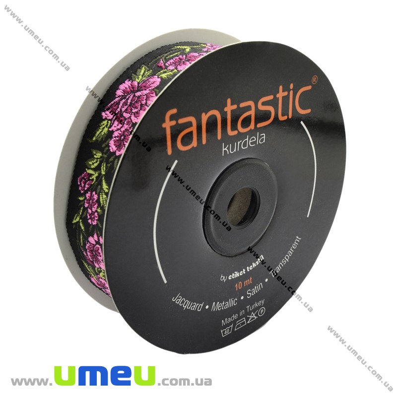 Тасьма Fantastic квіти, 25 мм, Рожева (LEN-010955) / 1 м