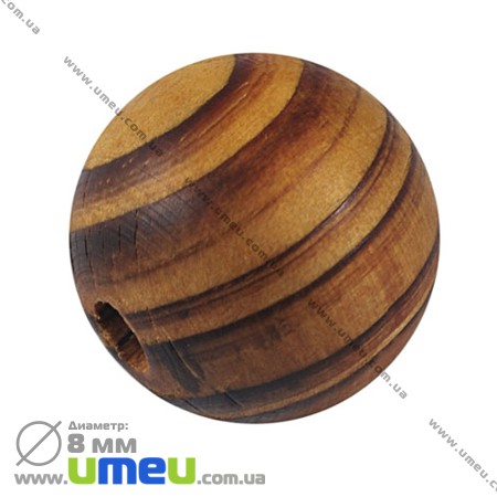 [Архів] Намистина дерев'яна без покриття Кругла, 8 мм, Натуральне дерево (BUS-001132) / 1 шт