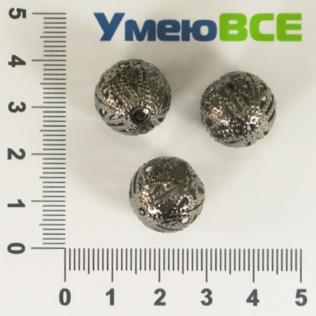[Архів] Намистина мет. кругла Ажурна, 16 мм, Чорна (BUS-001143) / 1 шт