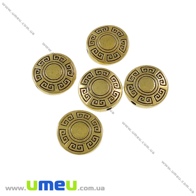 [Архів] Намистина мет. кругла плоска, 12,5х4 мм, Античне золото (BUS-001145) / 1 шт