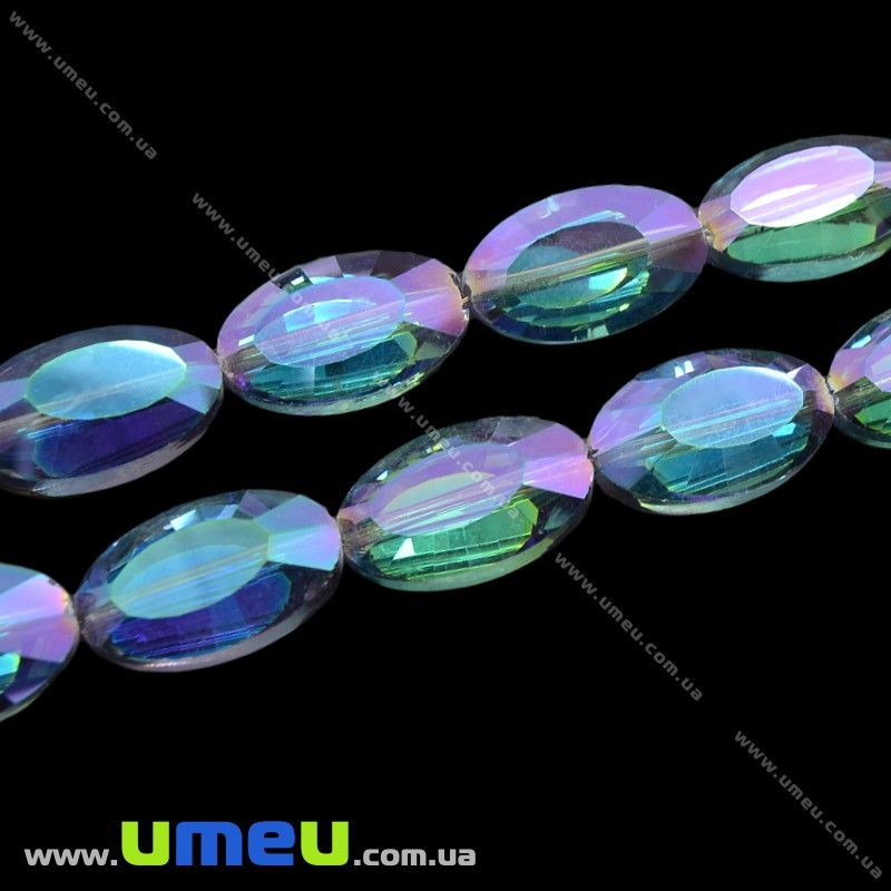 [Архів] Намистина під кришталь Овальна гранована, 18х11х8 мм, Зелено-блакитна АВ (BUS-011798) / 1 шт