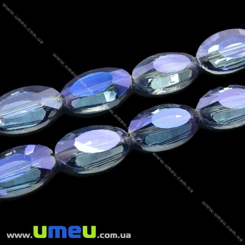 [Архів] Намистина під кришталь Овальна гранована, 18х11х8 мм, Сіро-синя АВ (BUS-011799) / 1 шт