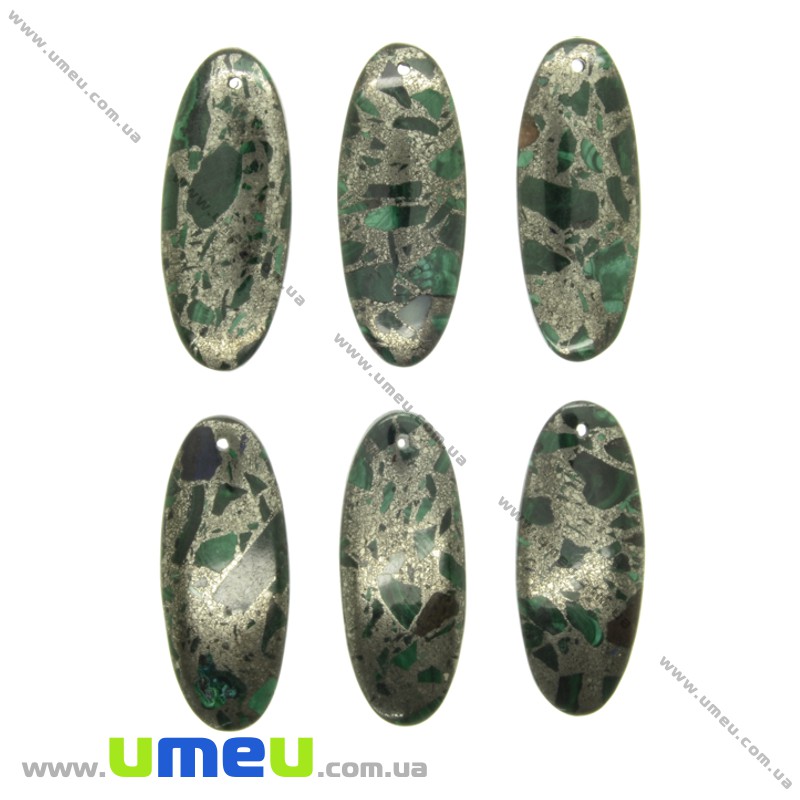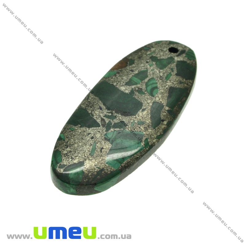 Підвіска з натурального каменю Овал, Малахіт з піритом, 50х20 мм (POD-011964) / 1 шт
