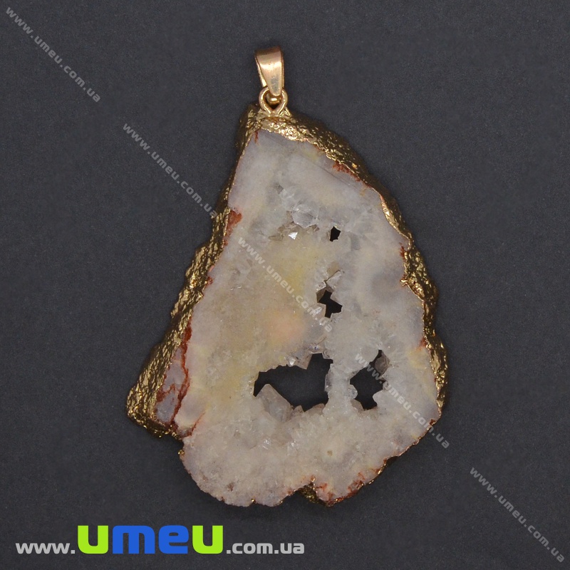 Підвіска з натурального каменю, Друза агату, Бежева, 67х47 мм (POD-011992) / 1 шт