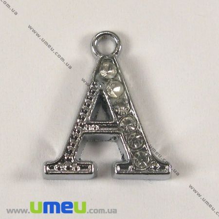 [Архів] Підвіска металева Буква зі стразами A, Срібло, 15х13 мм (POD-001210) / 1 шт