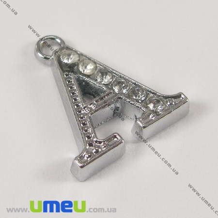 [Архів] Підвіска металева Буква зі стразами A, Срібло, 15х13 мм (POD-001210) / 1 шт