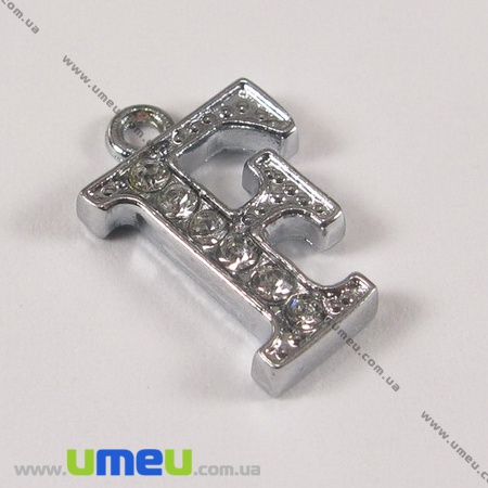 [Архів] Підвіска металева Буква зі стразами F, Срібло, 15х10 мм (POD-001213) / 1 шт