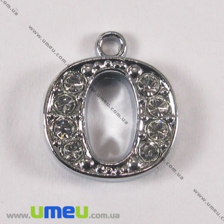 [Архів] Підвіска металева Буква зі стразами O, Срібло, 15х13 мм (POD-001216) / 1 шт