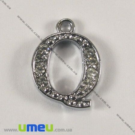 [Архів] Підвіска металева Буква зі стразами Q, Срібло, 15х11 мм (POD-001218) / 1 шт