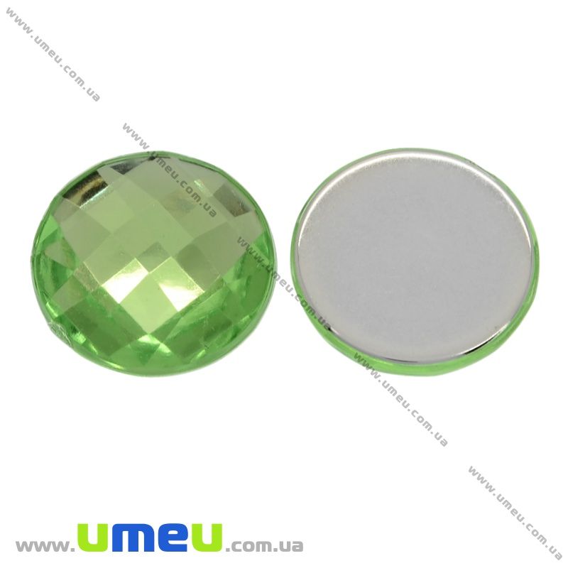 Кабошон пластиковий, Круглий гранований, 12 мм, Салатовий (KAB-012493) / 1 шт