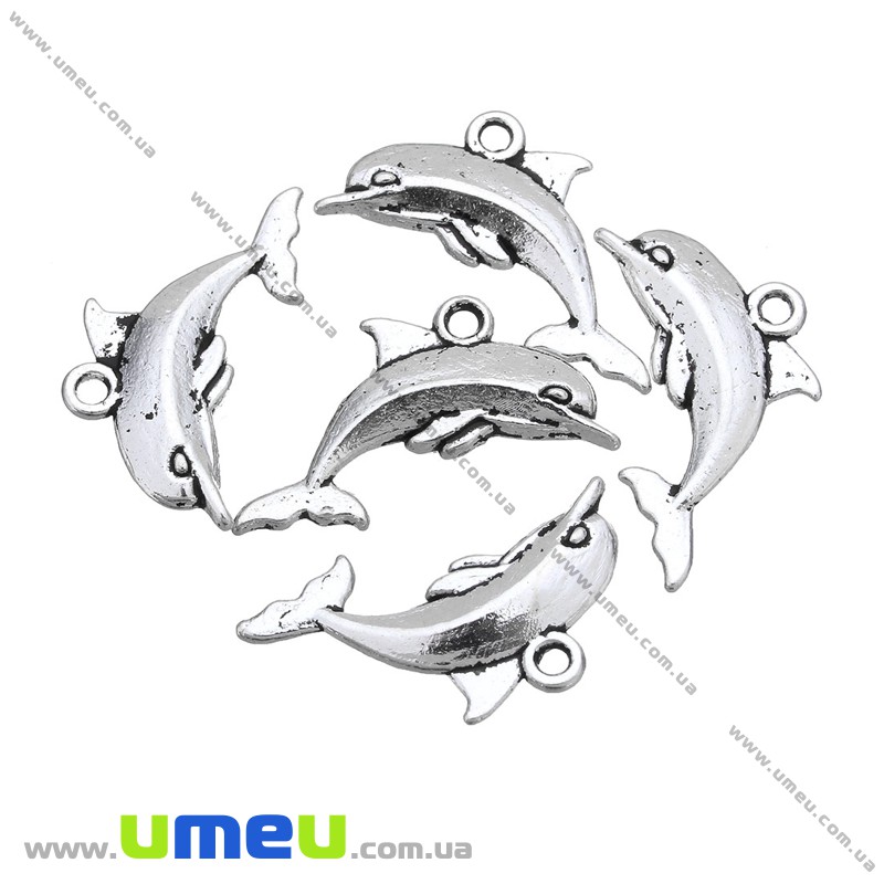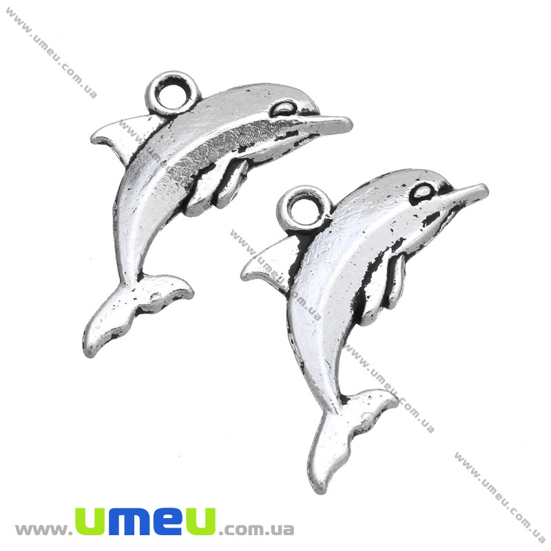 [Архів] Підвіска металева Дельфін (двухстор.), Античне срібло, 21х12 мм (POD-001252) / 1 шт