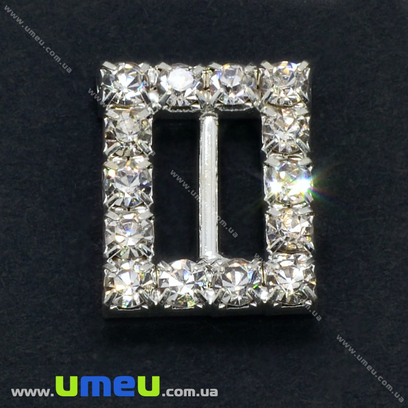 Пряжка металева зі стразами, 17х14 мм, Темне срібло (SEW-012723) / 1 шт
