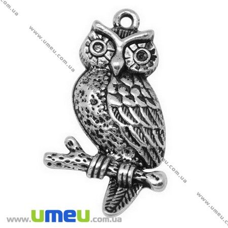 [Архів] Підвіска металева Сова, Античне срібло, 33х18 мм (POD-001278) / 1 шт