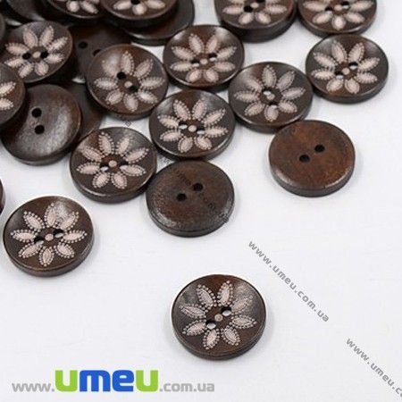 Гудзик дерев'яний Круглий Квітка, 25 мм, Коричневий (PUG-013029) / 1 шт
