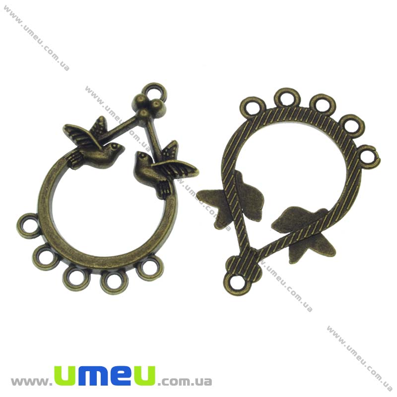 [Архів] Конектор металевий Пташки, 36х22 мм, Антична бронза (KON-013424) / 1 шт