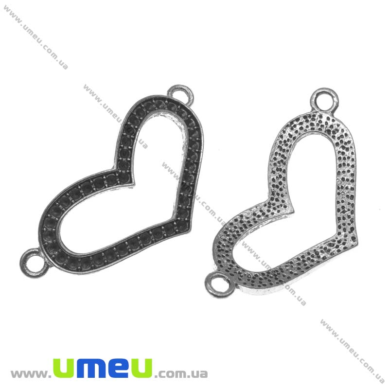 Конектор металевий Серце, 37х18 мм, Античне срібло (KON-013428) / 1 шт