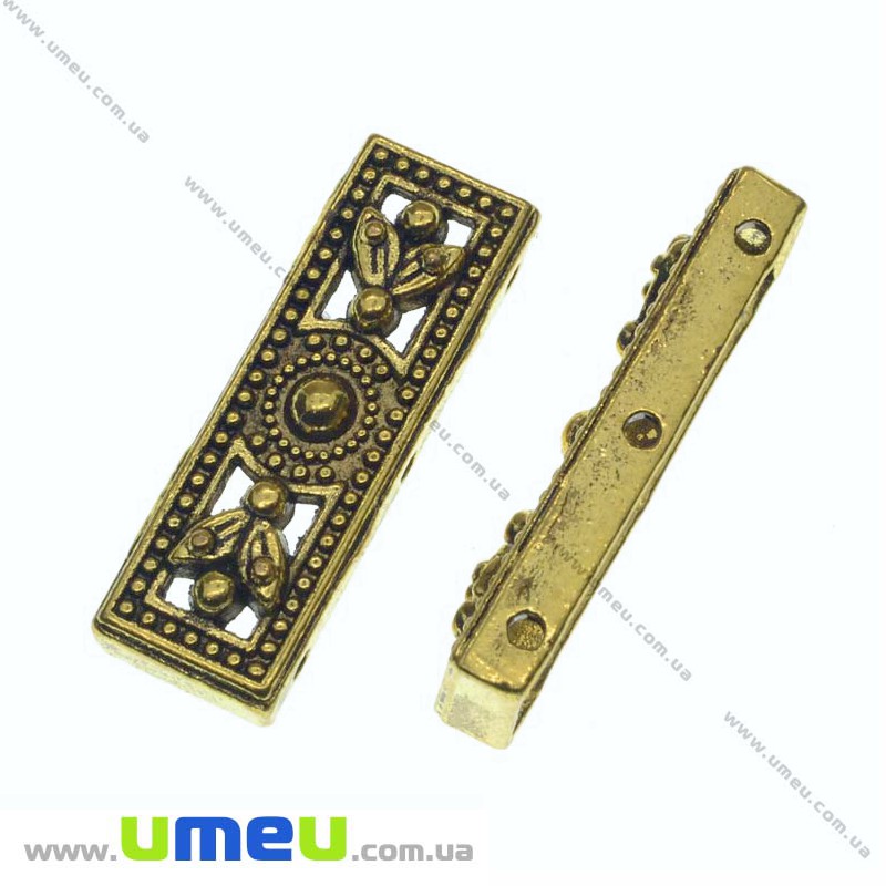 [Архів] Розділювач металевий на 3 отвори, Античне золото, 25х8 мм (KON-013483) / 1 шт