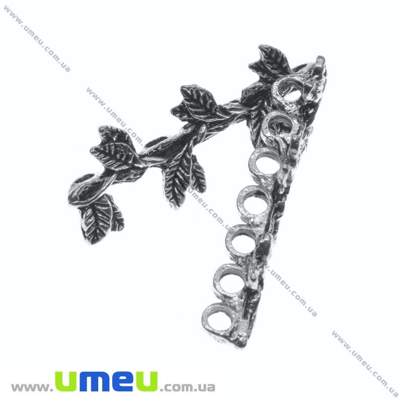[Архів] Розділювач металевий на 7 отворів Листочки, Античне срібло, 30х11 мм (KON-013490) / 1 шт