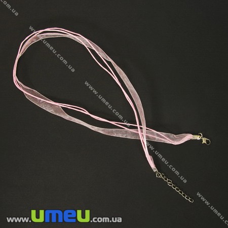 Основа на шию (органза та вощений шнур), 42 см, Рожева (OSN-001364) / 1 шт