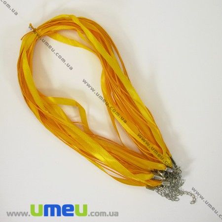 [Архів] Основа на шию (атл. стрічка і вощений шнур), Помаранчева, 46 см, 7 мм (OSN-001374) / 1 шт