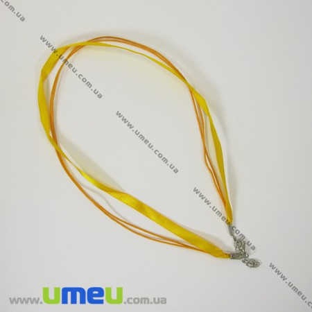 [Архів] Основа на шию (атл. стрічка і вощений шнур), Помаранчева, 46 см, 7 мм (OSN-001374) / 1 шт
